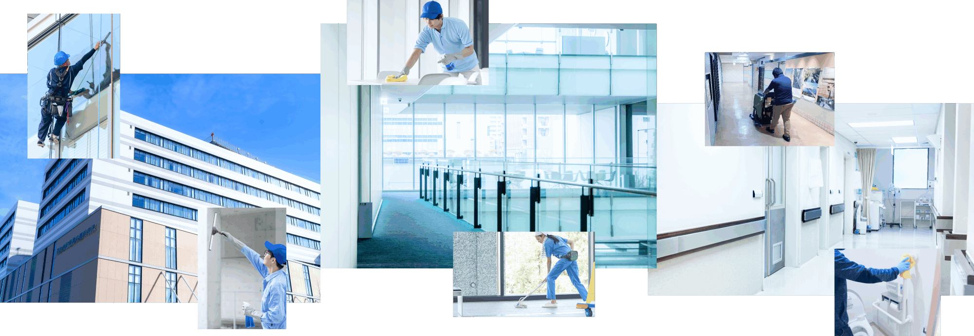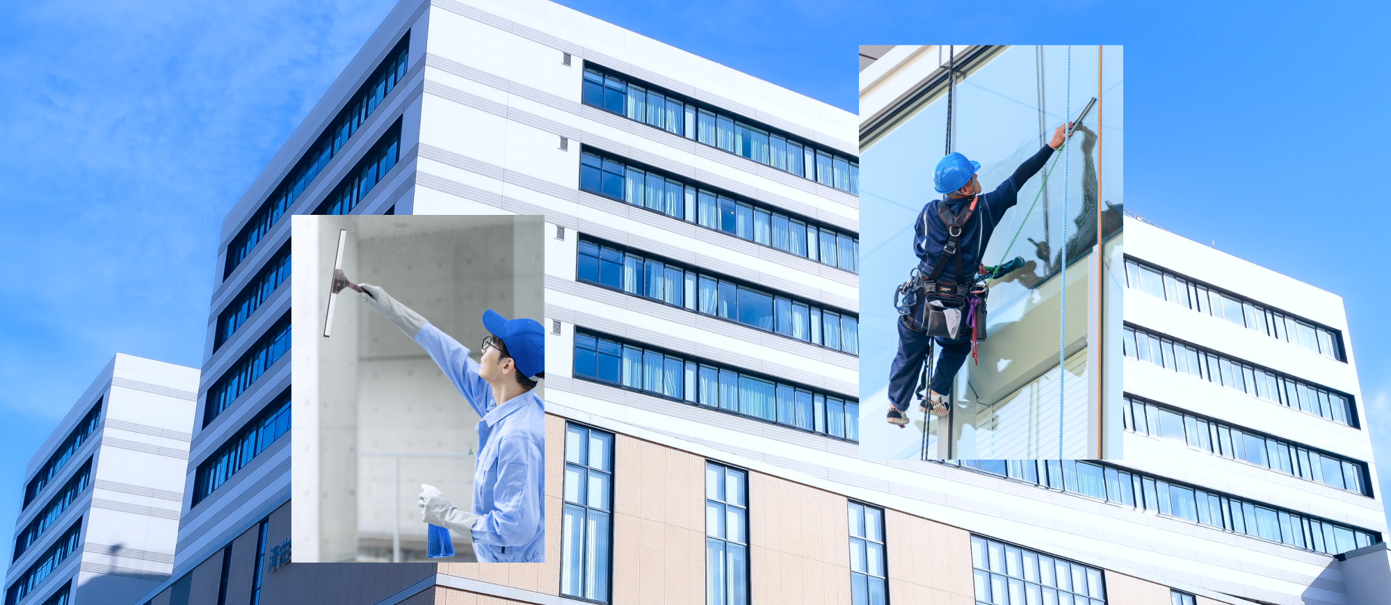 ロープ工法による高所ガラス清掃や、資格を持つ技術者による安全管理など、物件ごとに最適な清掃計画を提案しています。